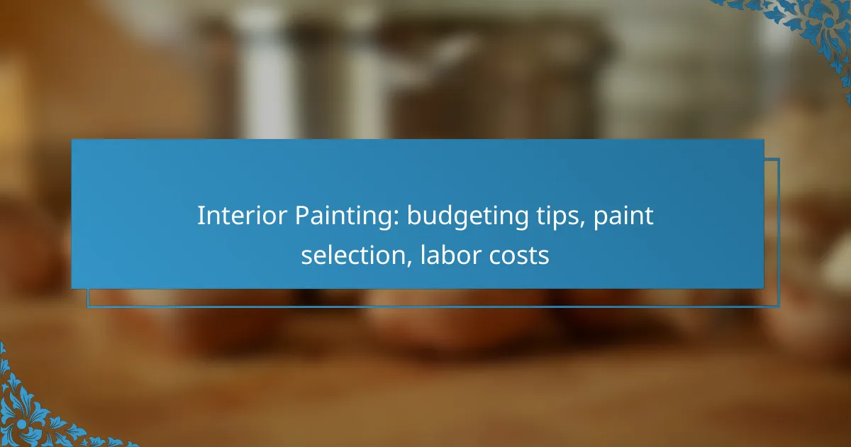 When planning an interior painting project, it’s crucial to establish a clear budget that accounts for materials, labor, and any additional expenses. Selecting the right paint involves considering factors such as surface type and local climate, ensuring both performance and aesthetic appeal. Additionally, understanding labor costs, which can range from CAD 25 to CAD 50 per hour in Canada, will help you effectively manage your overall expenses.
